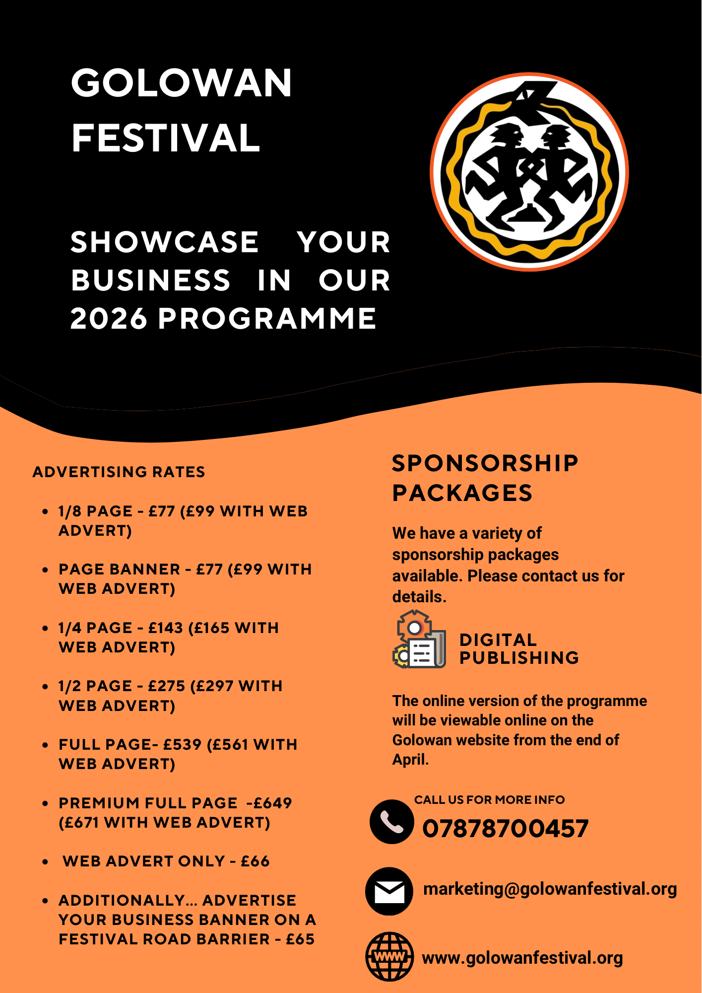 We have a of variety sponsorship packages available for this year’s festival. Please contact us for details.
